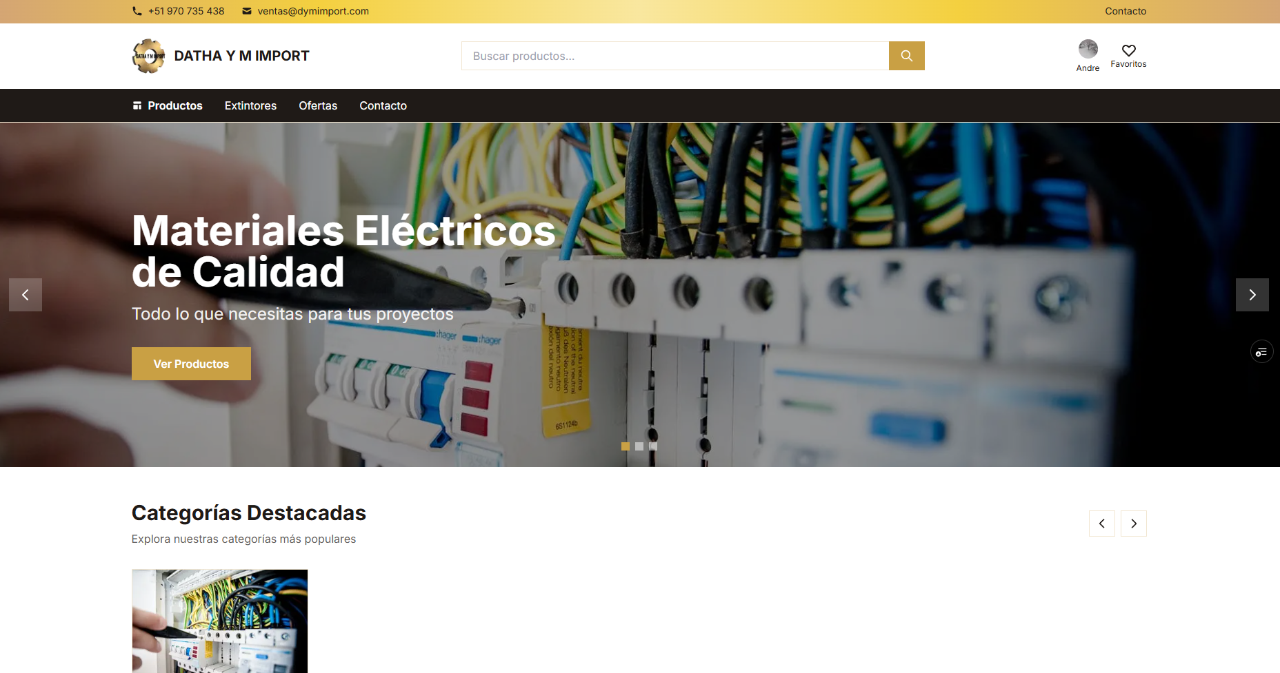 Tienda en linea para empresa peruana de materiales electricos. Catalogo de productos, carrito de compras, panel de administracion y pasarela de pagos. Marcas como Schneider, ABB, Legrand y Siemens.